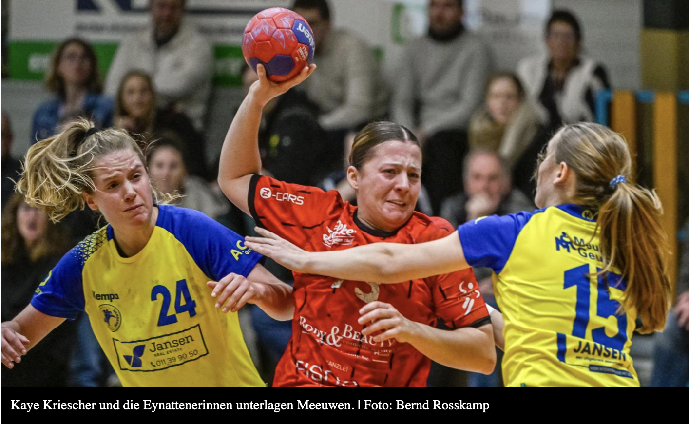 Die Damen des HC Eynatten-Raeren haben ihre Begegnung am frühen Samstagabend gegen DHC Meeuwen mit 20:26 verloren. Beim (Heim-)Debüt von Neu-Coach Bruno Thevissen wurden die Unterschiede in einer anfangs noch ausgeglichenen Partie in der zweiten Halbzeit deutlich. Zur Halbzeit hatten die Gastgeberinnen noch mit nur einem Tor hinten gelegen (12:13).