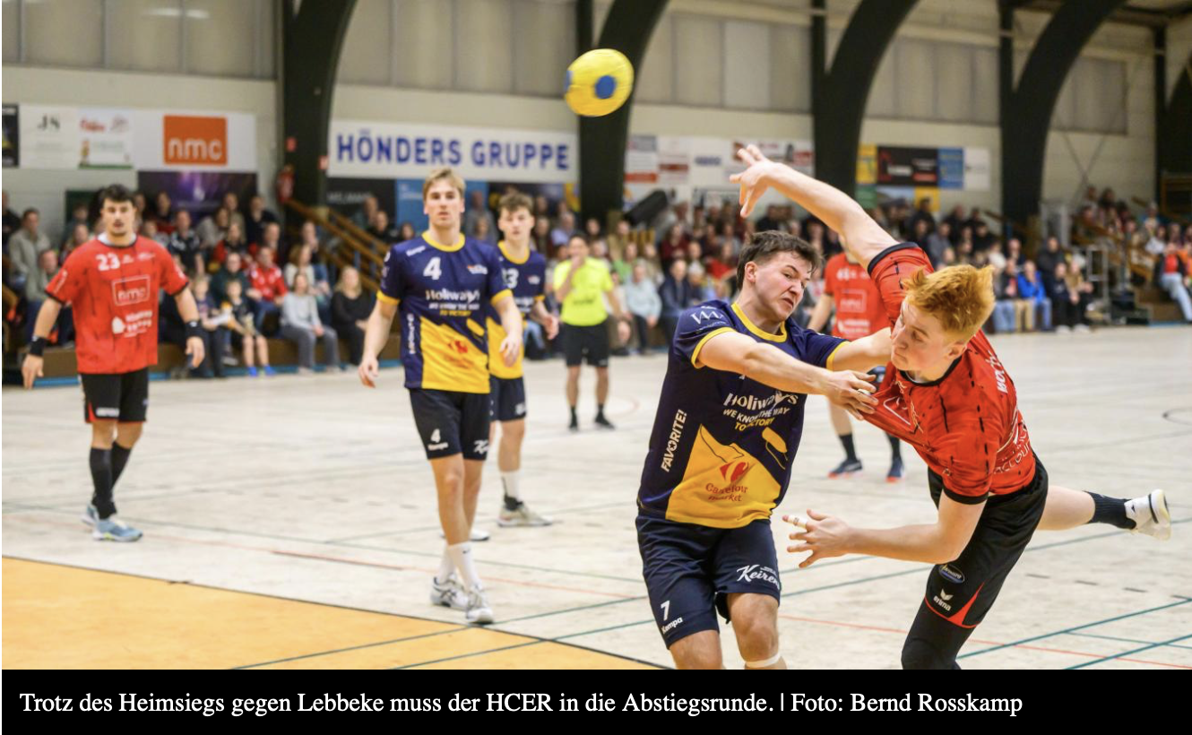 Der HCER startete engagiert in die Partie und versuchte früh, sich abzusetzen, ehe Lebbeke zunehmend besser ins Spiel fand. Die Gäste übernahmen zwischenzeitlich die Führung. Mehrere Entscheidungen des Schiedsrichtergespanns sorgten dabei für Diskussionen und Unverständnis auf den Rängen. Mit einem 11:13-Rückstand mussten die Schwarz-Roten in die Kabine.